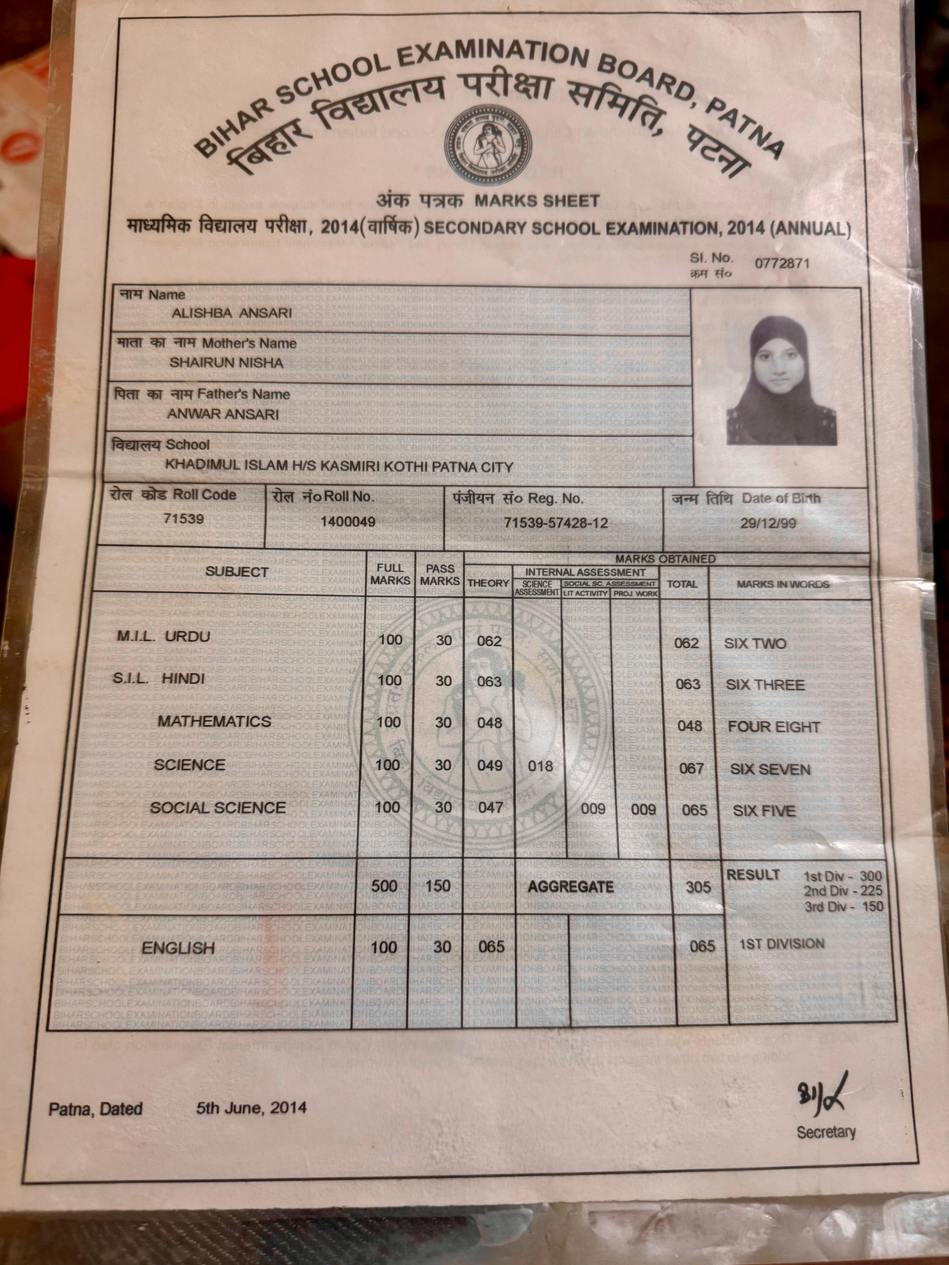 | Exam | Full Marks | Pass Marks | Marks Obtained |