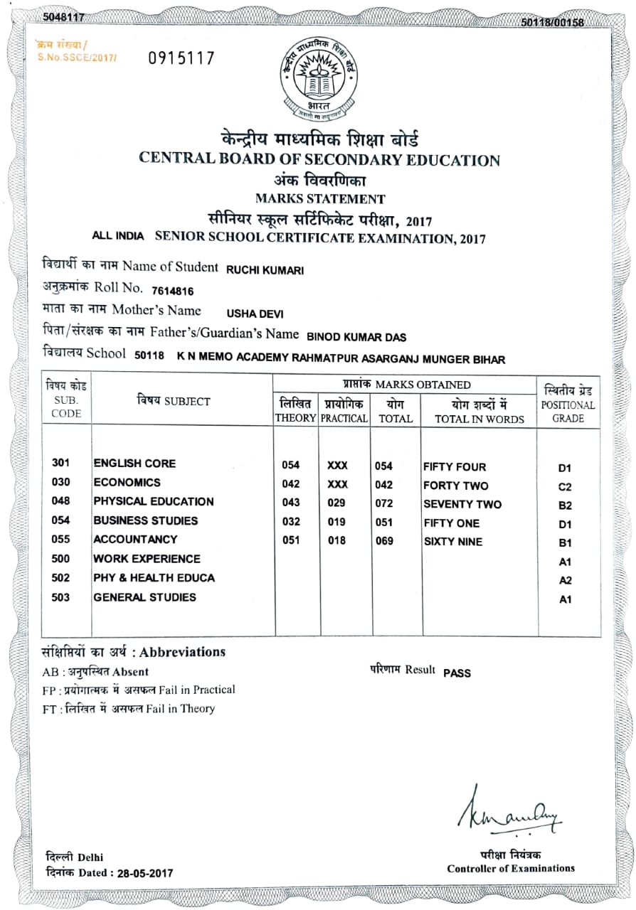 | Exam | Full Marks | Pass Marks | Marks Obtained |