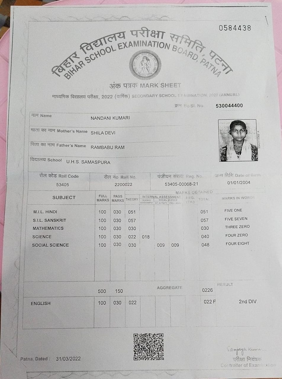 | Exam | Full Marks | Pass Marks | Marks Obtained |