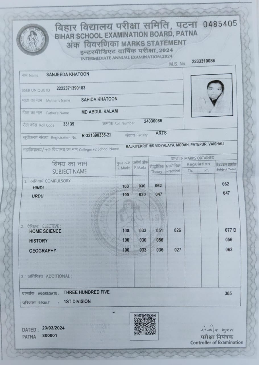| : | Sahida Khatoon | |