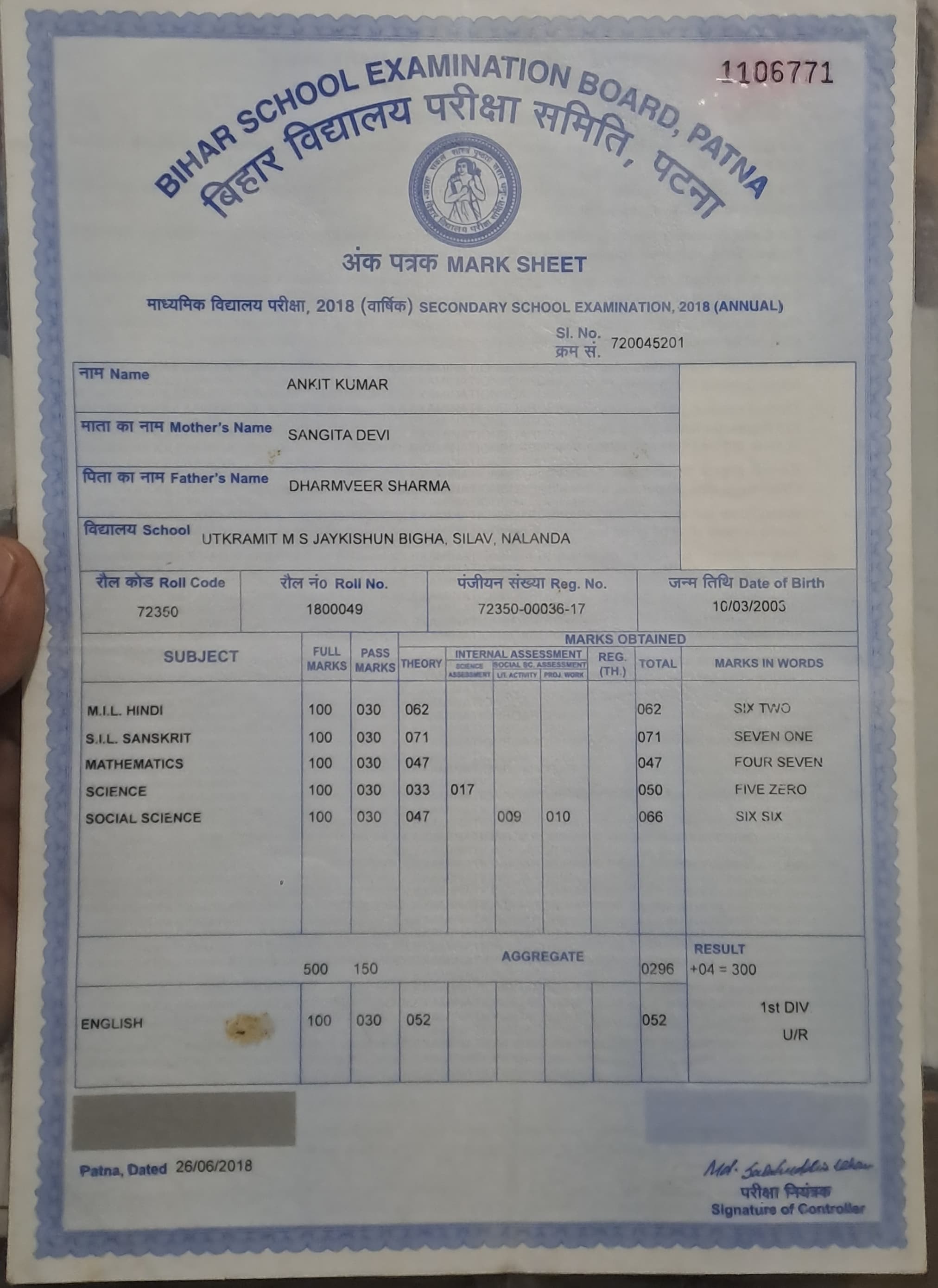 | Exam | Full Marks | Pass Marks | Marks Obtained |