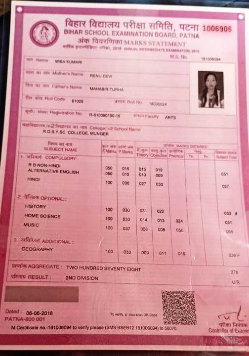 | Exam | Full Marks | Pass Marks | Marks Obtained |