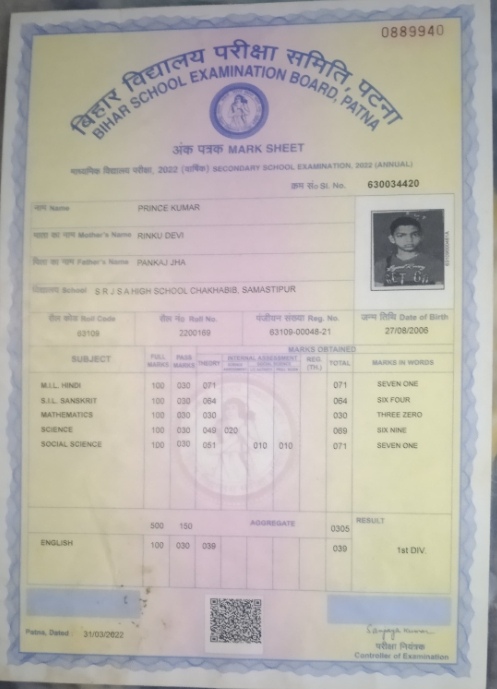 | Exam | Full Marks | Pass Marks | Marks Obtained |