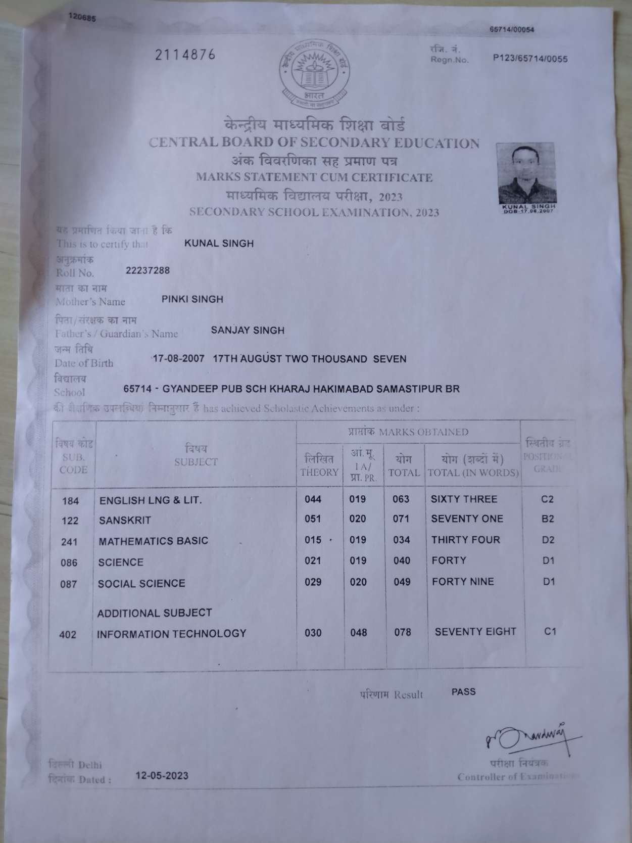 | Exam | Full Marks | Pass Marks | Marks Obtained |