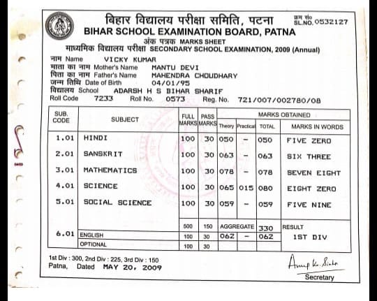 | Exam | Full Marks | Pass Marks | Marks Obtained |