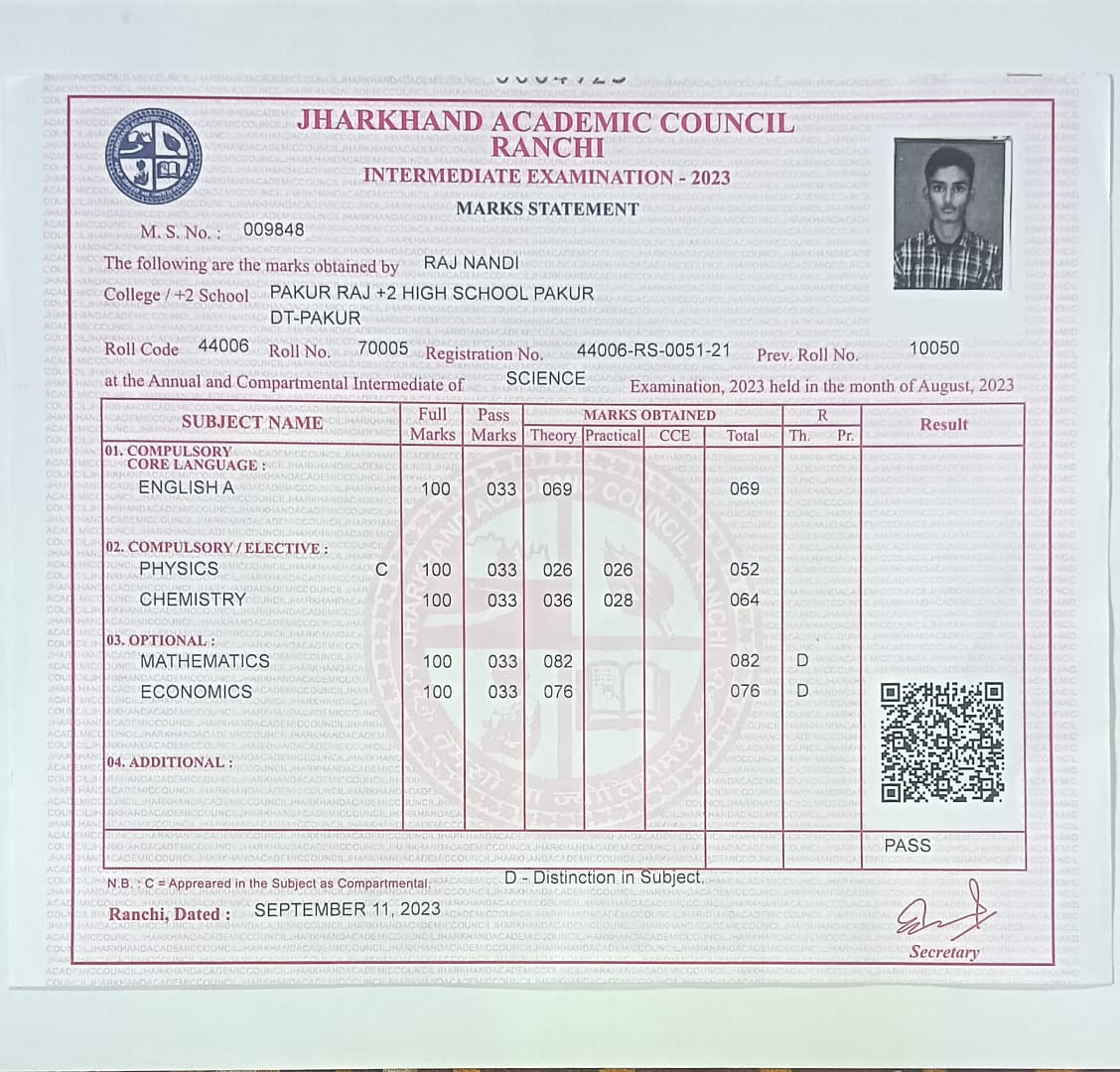 | Exam | Full Marks | Pass Marks | Marks Obtained |