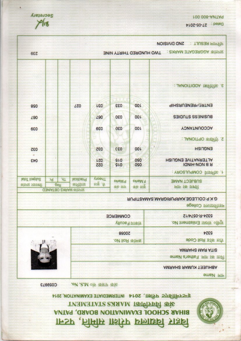 | Exam | Full Marks | Pass Marks | Marks Obtained |