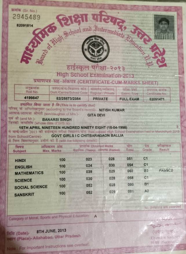 | Exam | Full Marks | Pass Marks | Marks Obtained |