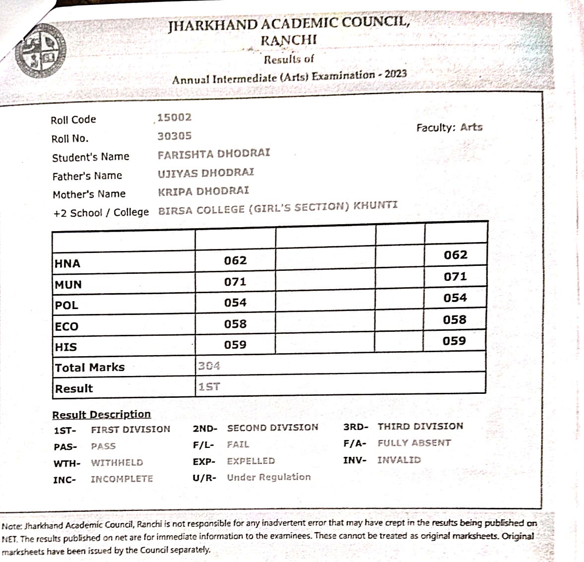 | Exam | Full Marks | Pass Marks | Marks Obtained |