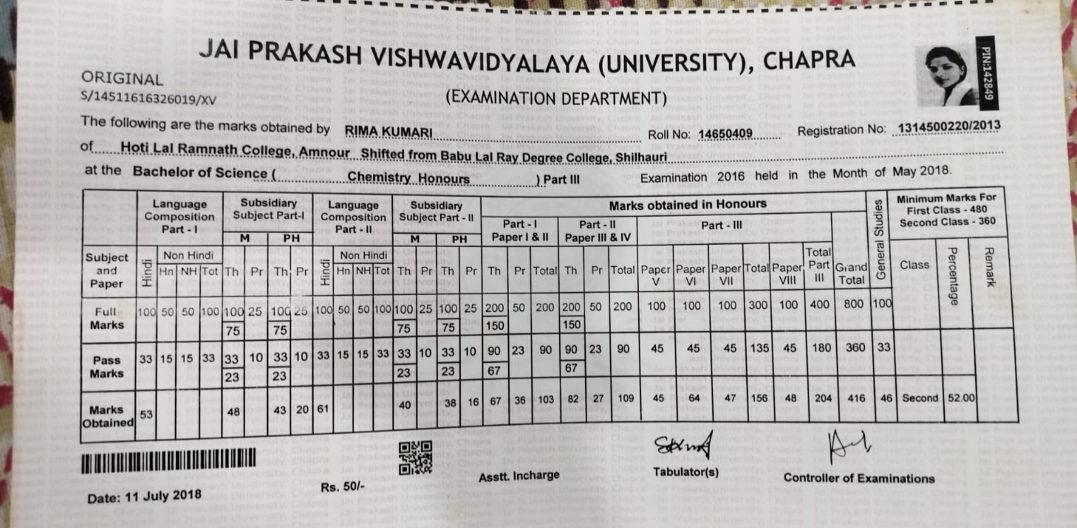 | Exam | Full Marks | Pass Marks | Marks Obtained |
