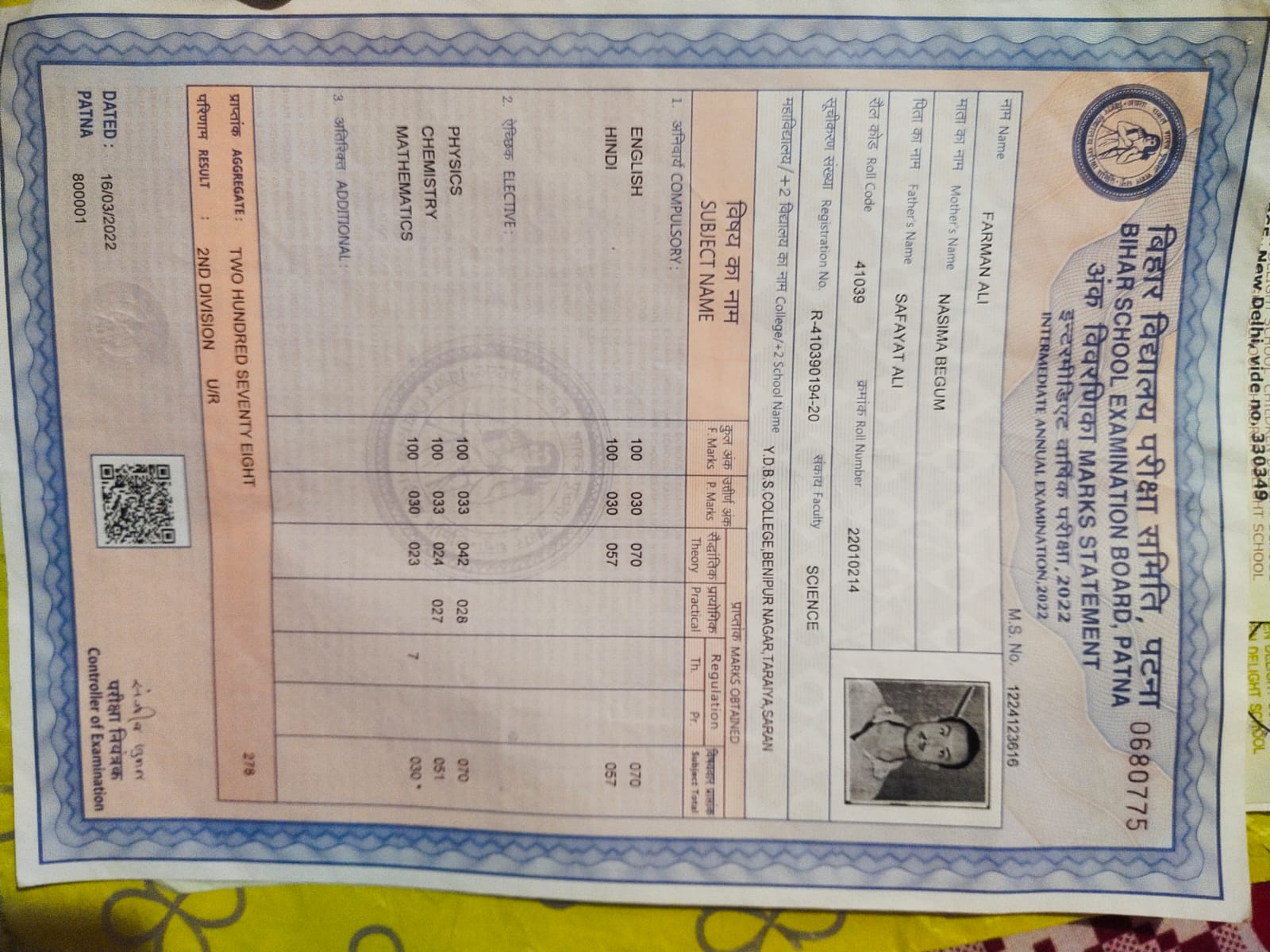 | Exam | Full Marks | Pass Marks | Marks Obtained |