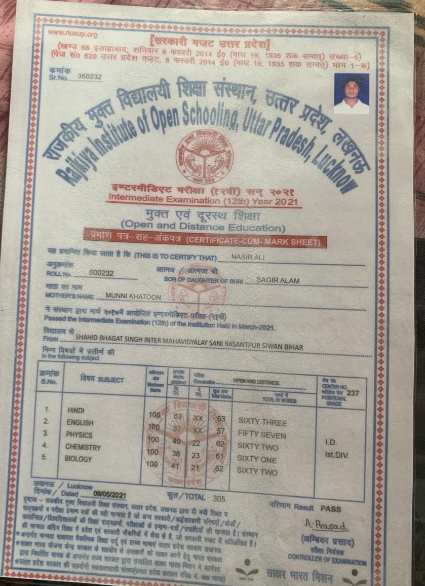 | Exam | Full Marks | Pass Marks | Marks Obtained |