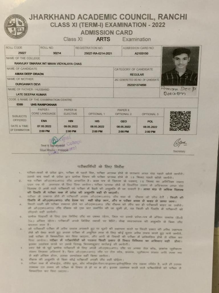 | Exam | Full Marks | Pass Marks | Marks Obtained |