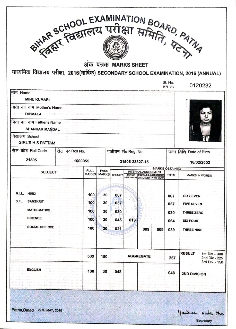 | Exam | Full Marks | Pass Marks | Marks Obtained |