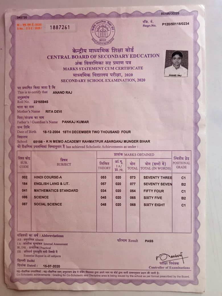 | Exam | Full Marks | Pass Marks | Marks Obtained |