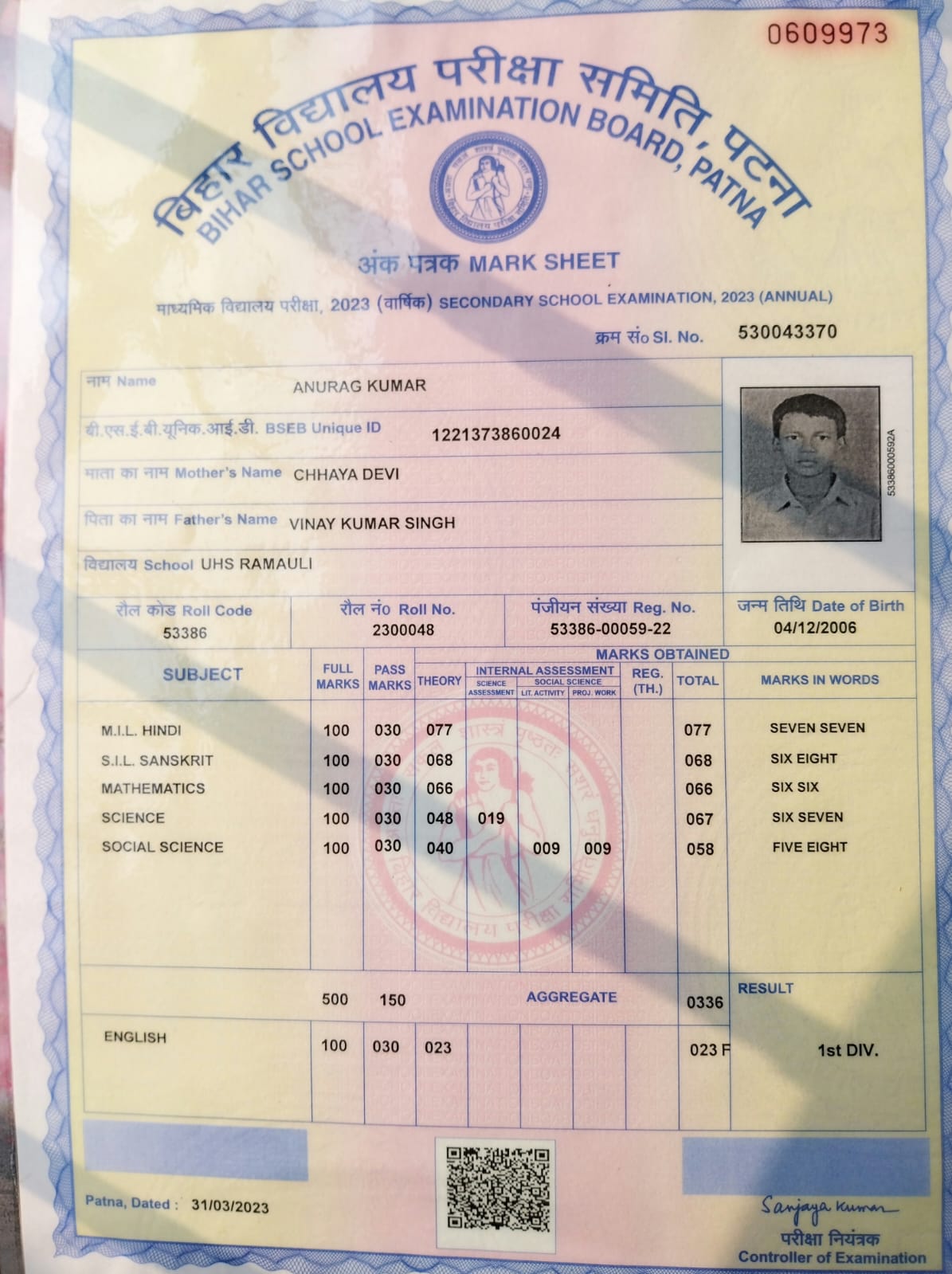 | Exam | Full Marks | Pass Marks | Marks Obtained |