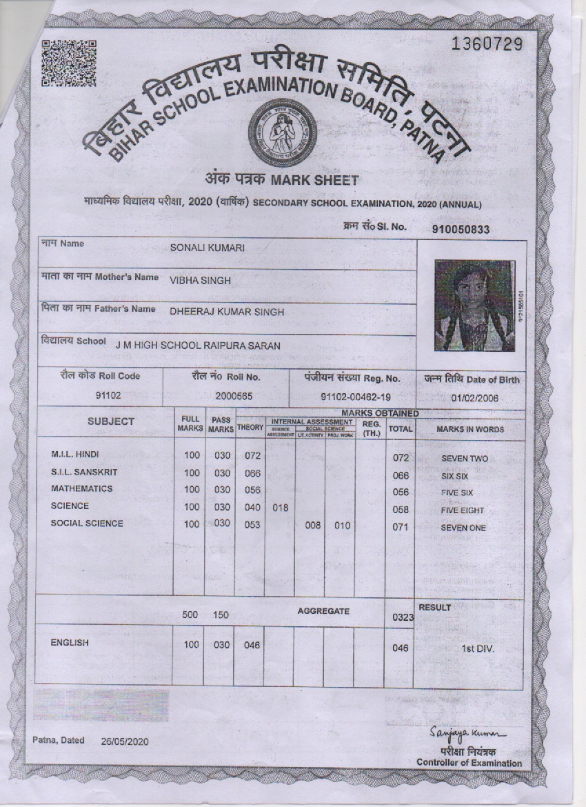 | Exam | Full Marks | Pass Marks | Marks Obtained |