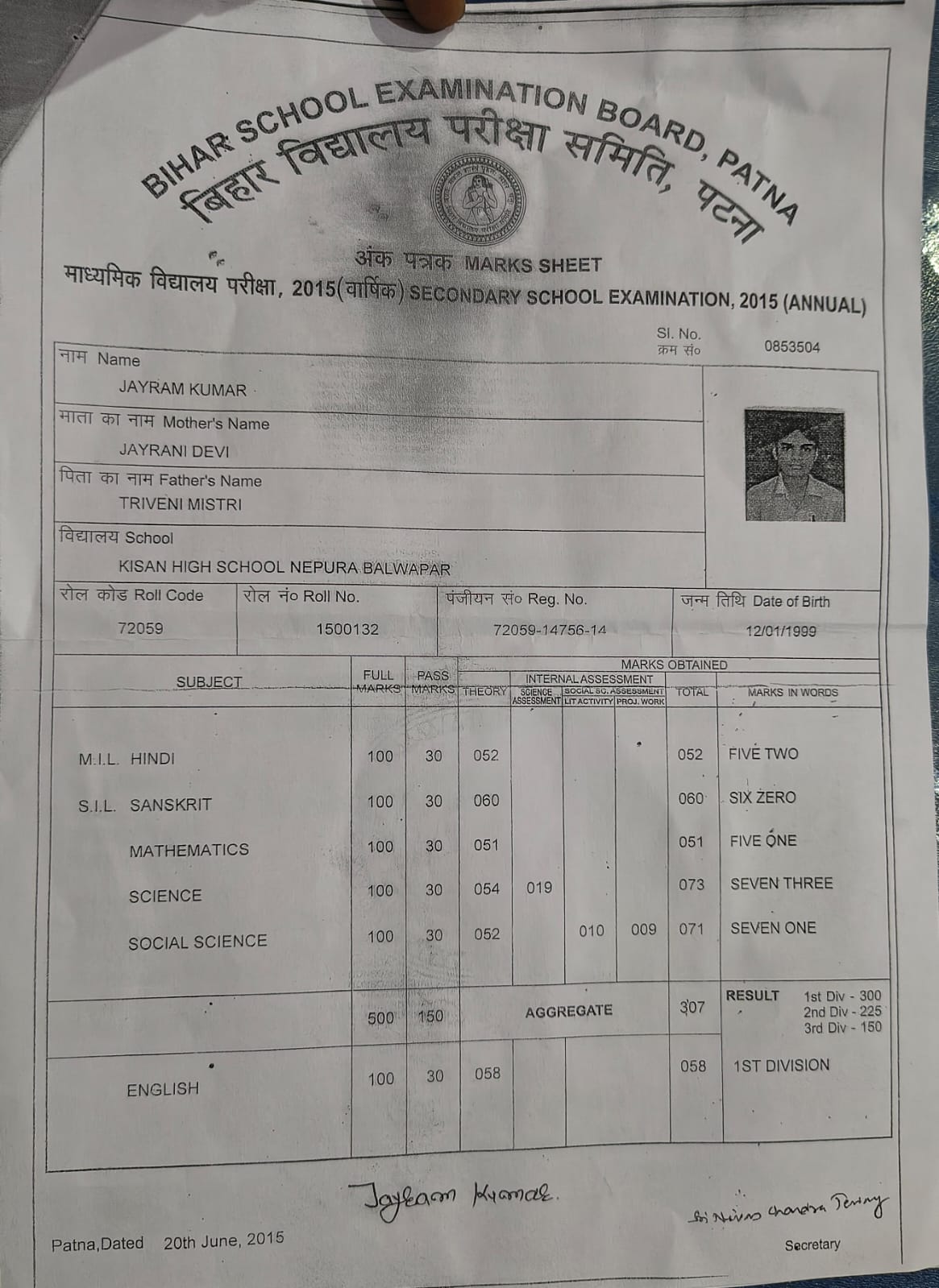 | Exam | Full Marks | Pass Marks | Marks Obtained |