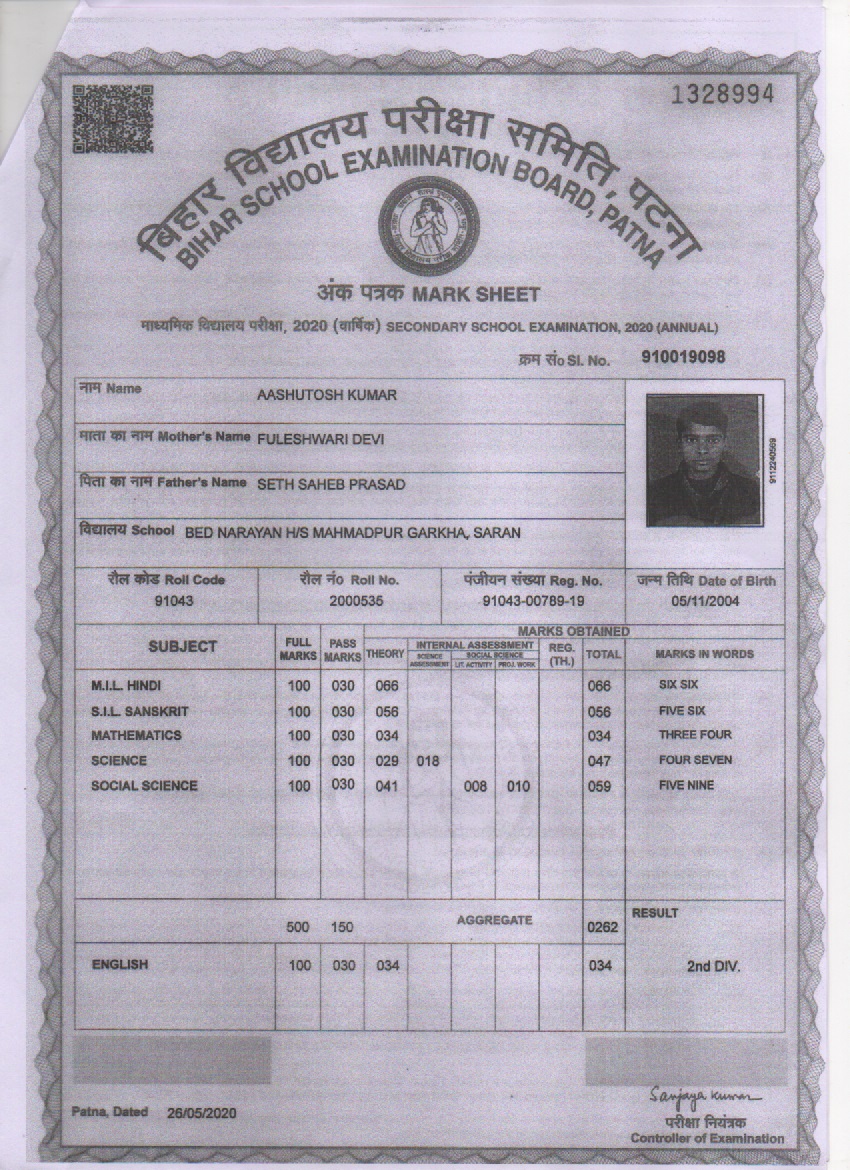 | Exam | Full Marks | Pass Marks | Marks Obtained |
