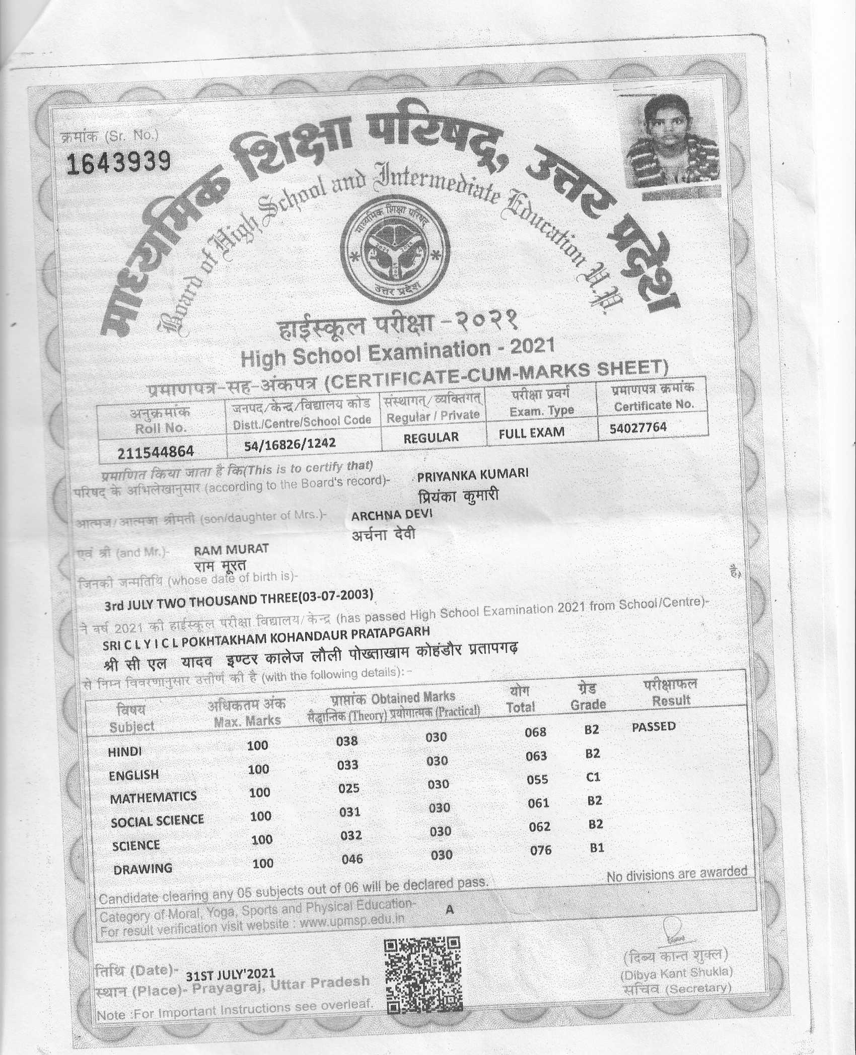 | Exam | Full Marks | Pass Marks | Marks Obtained |