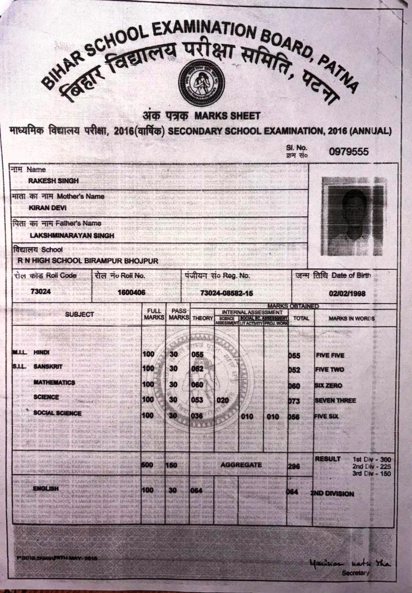 | Exam | Full Marks | Pass Marks | Marks Obtained |