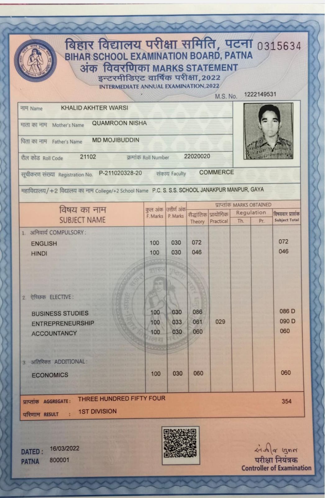 | Exam | Full Marks | Pass Marks | Marks Obtained |