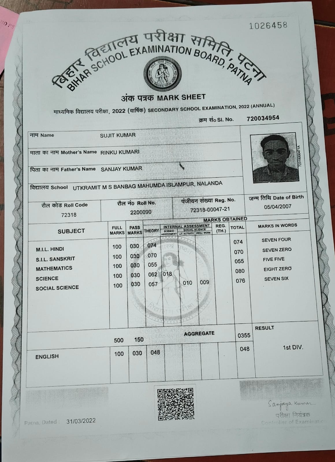| Exam | Full Marks | Pass Marks | Marks Obtained |