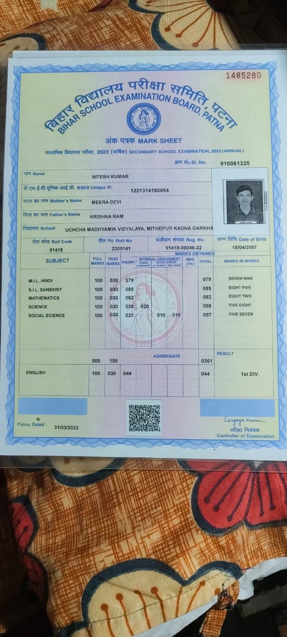 | Exam | Full Marks | Pass Marks | Marks Obtained |