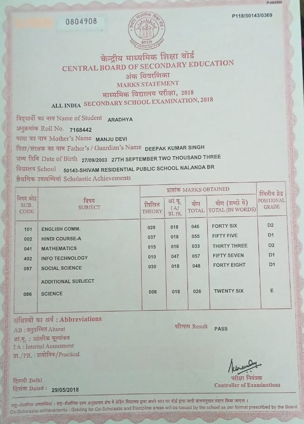 | Exam | Full Marks | Pass Marks | Marks Obtained |