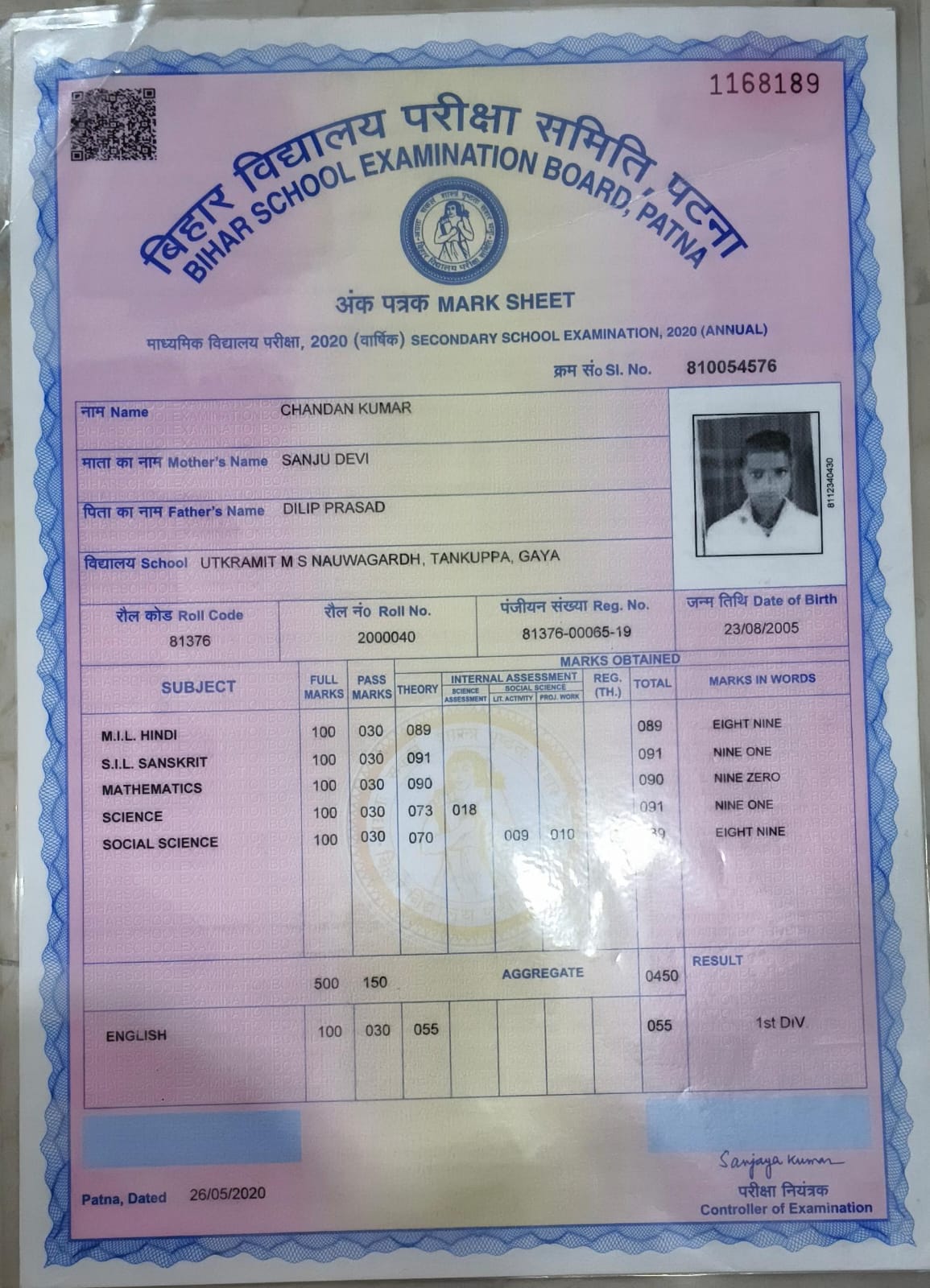 | Exam | Full Marks | Pass Marks | Marks Obtained |