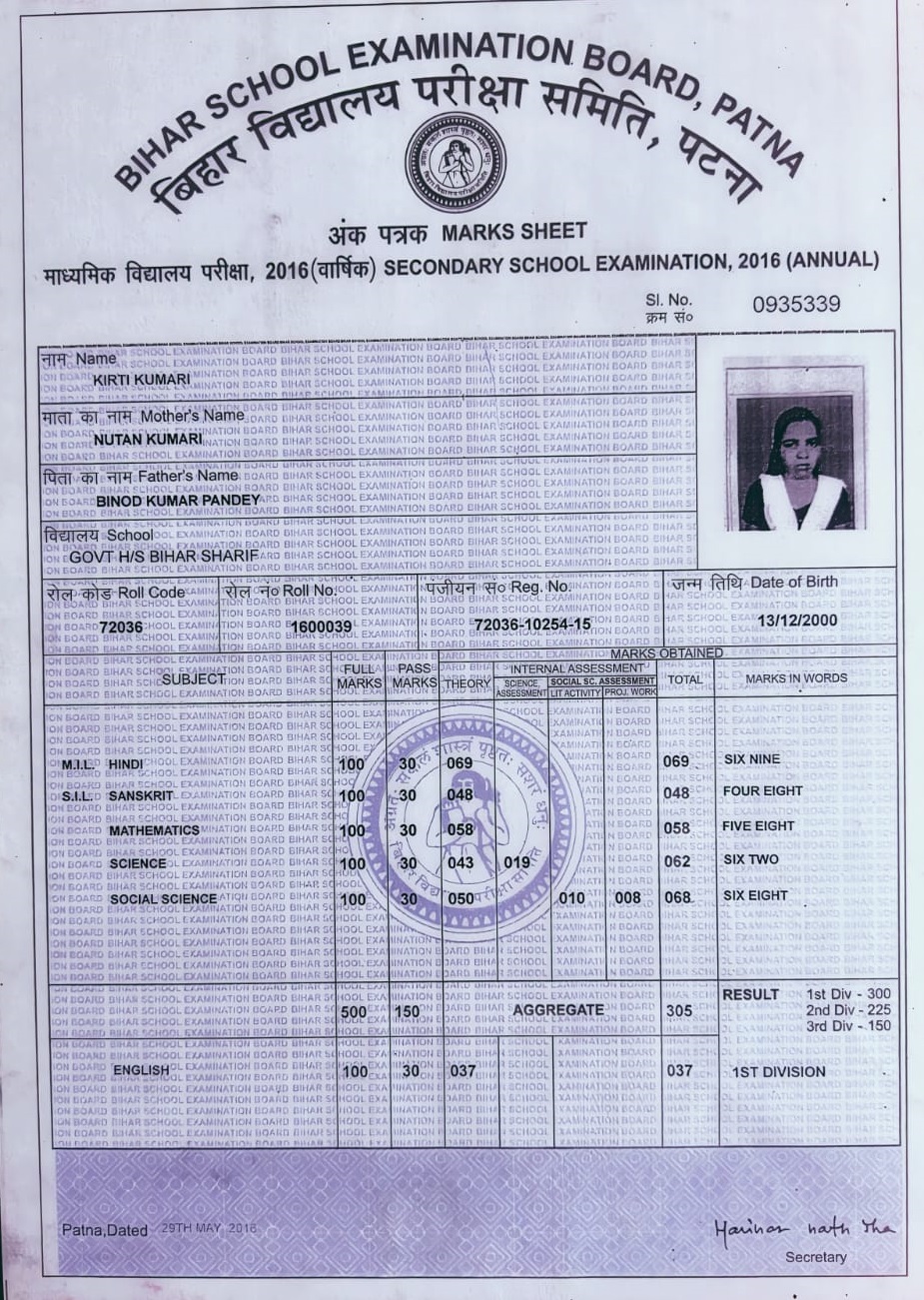 | Exam | Full Marks | Pass Marks | Marks Obtained |