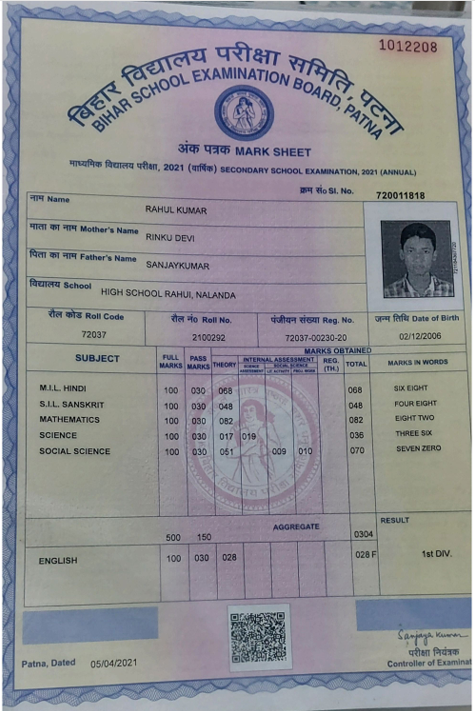 | Exam | Full Marks | Pass Marks | Marks Obtained |