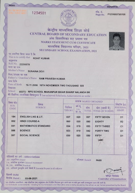 | Exam | Full Marks | Pass Marks | Marks Obtained |