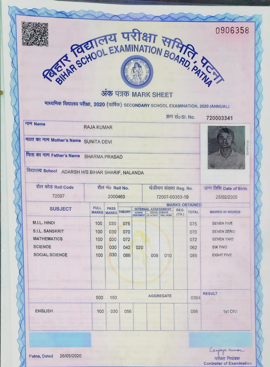 | Exam | Full Marks | Pass Marks | Marks Obtained |