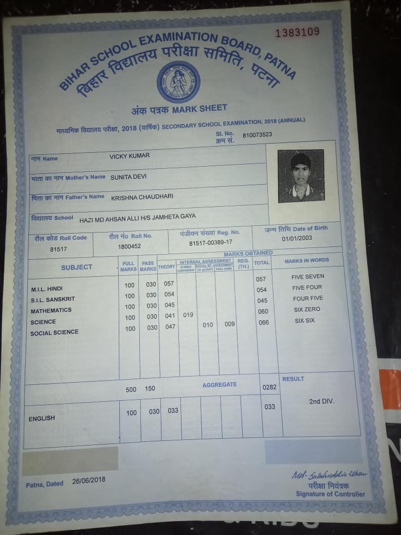 | Exam | Full Marks | Pass Marks | Marks Obtained |