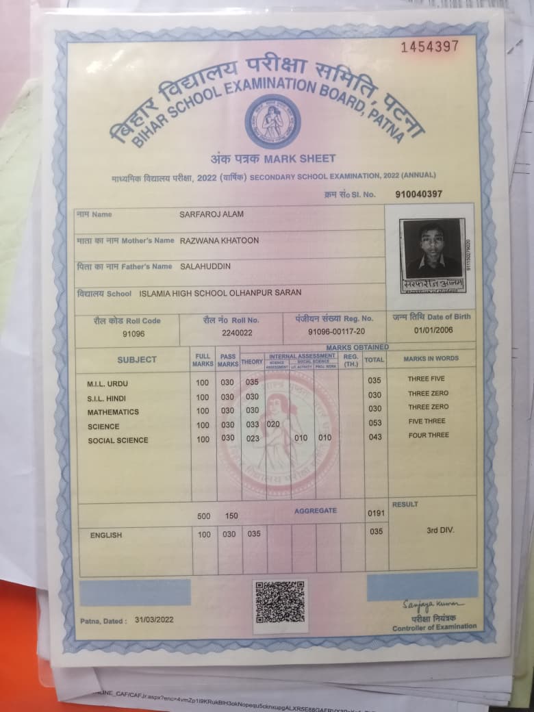 | Exam | Full Marks | Pass Marks | Marks Obtained |