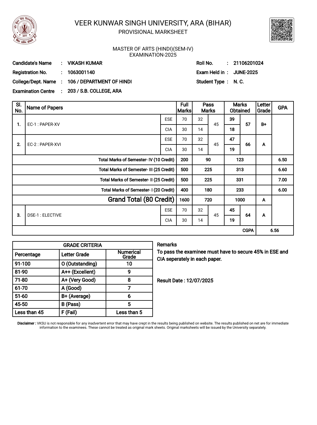 | Exam | Full Marks | Pass Marks | Marks Obtained |