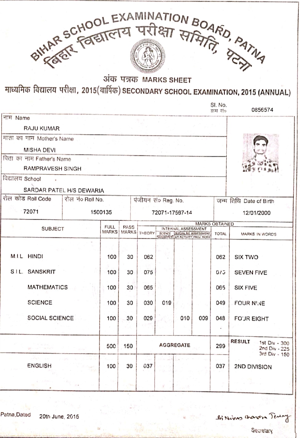 | Exam | Full Marks | Pass Marks | Marks Obtained |