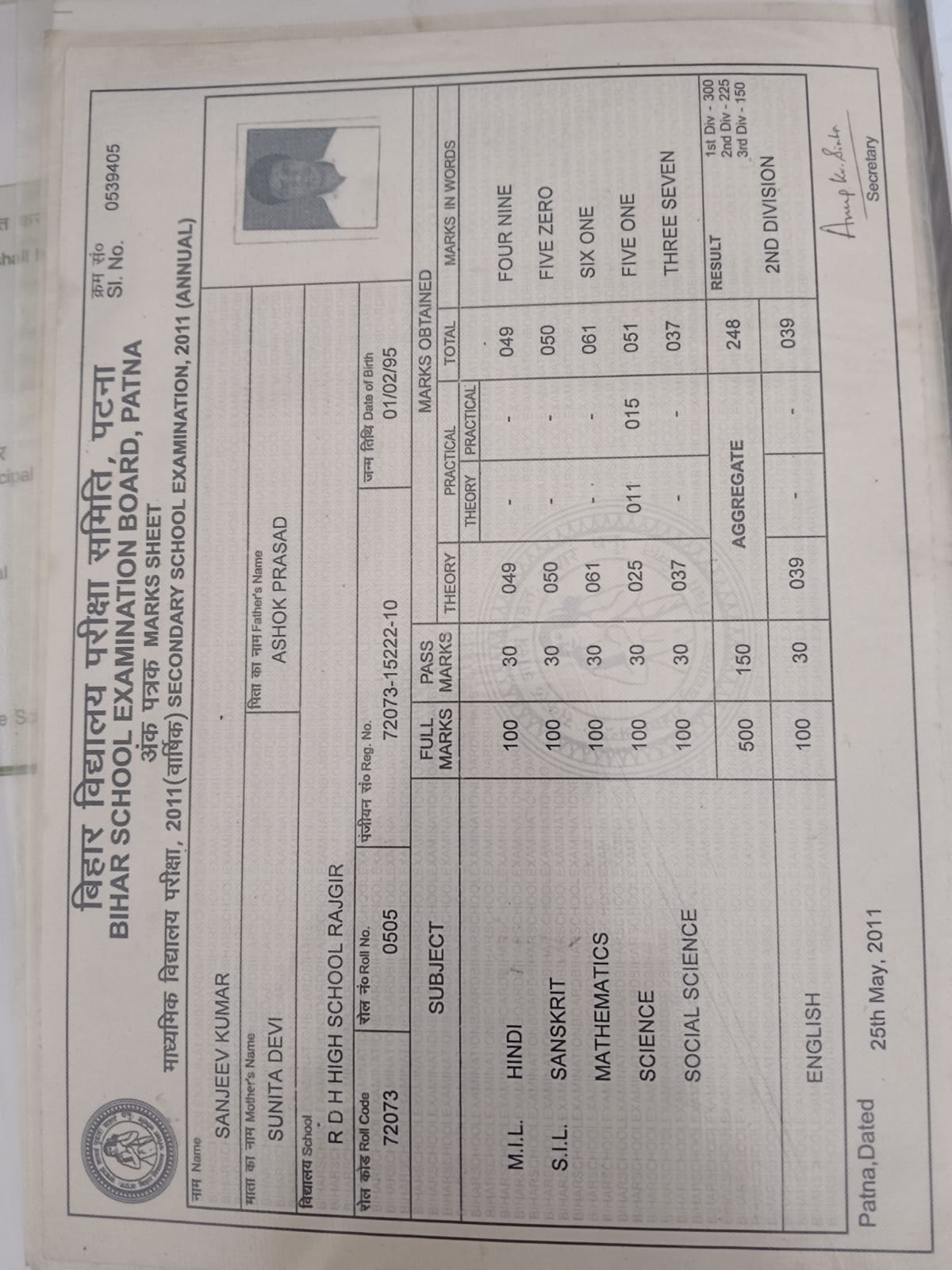 | Exam | Full Marks | Pass Marks | Marks Obtained |