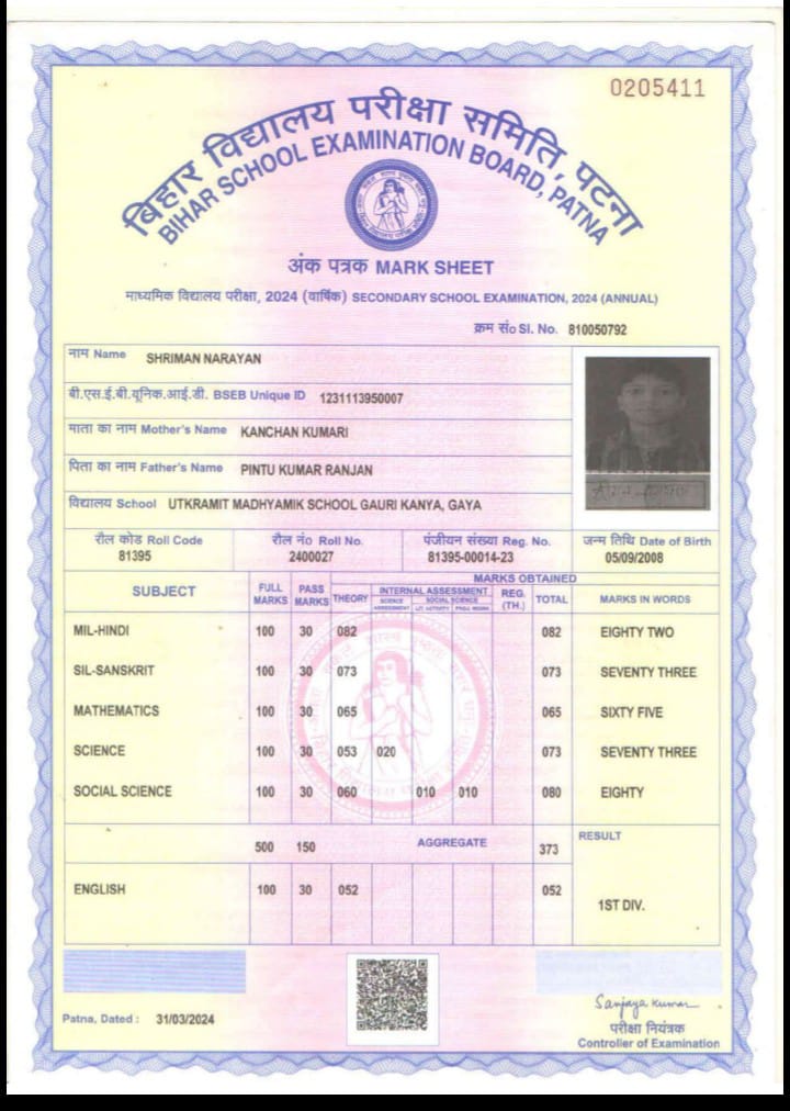 | Exam | Full Marks | Pass Marks | Marks Obtained |
