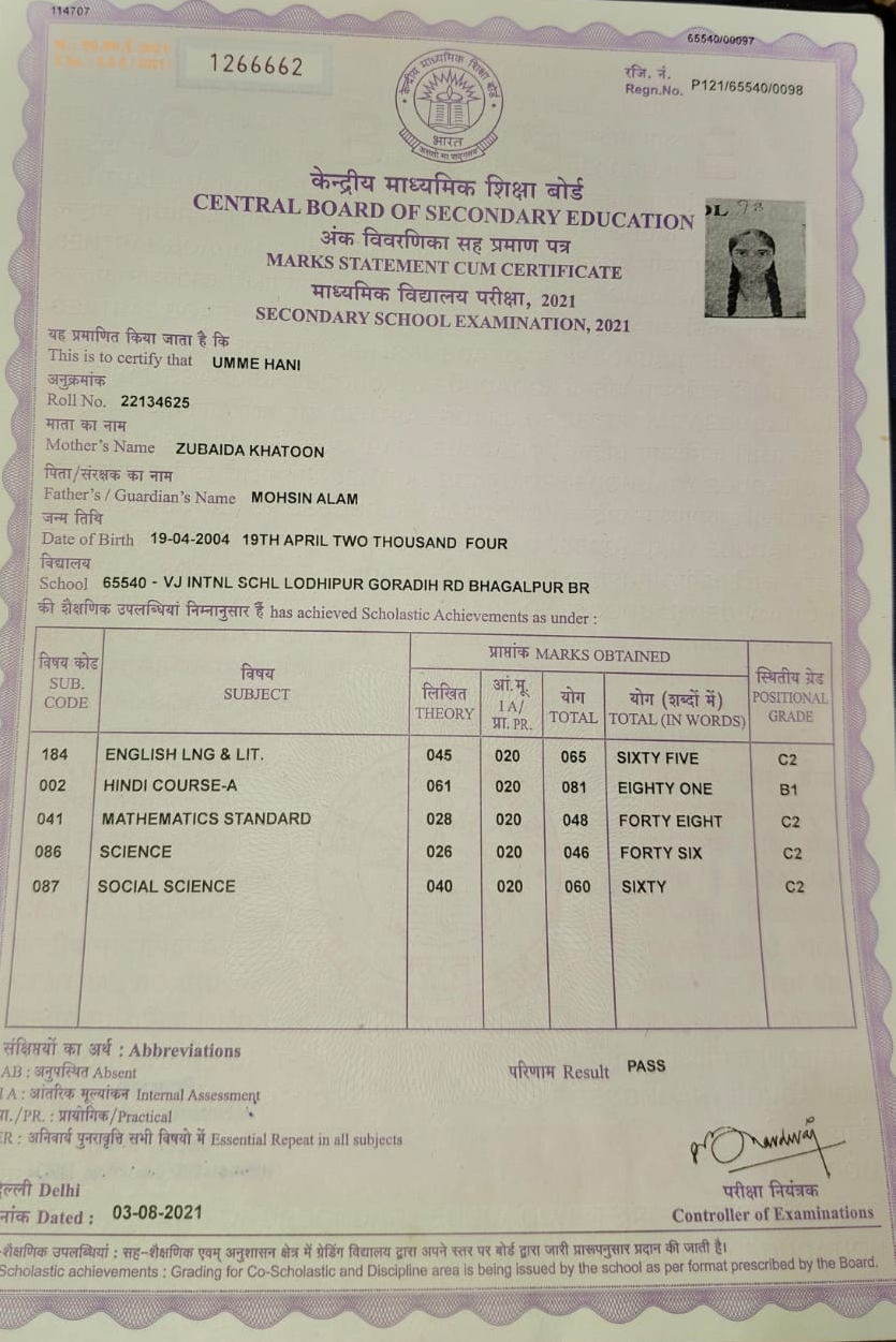 | Exam | Full Marks | Pass Marks | Marks Obtained |