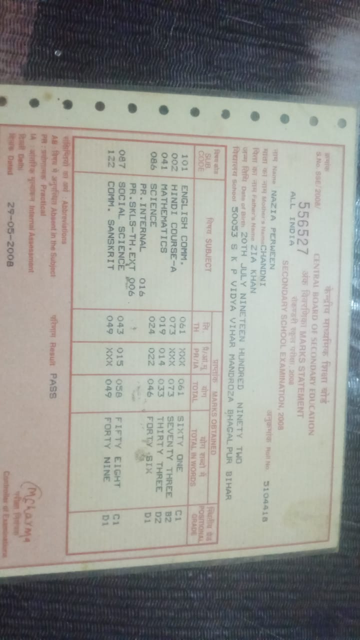 | Exam | Full Marks | Pass Marks | Marks Obtained |