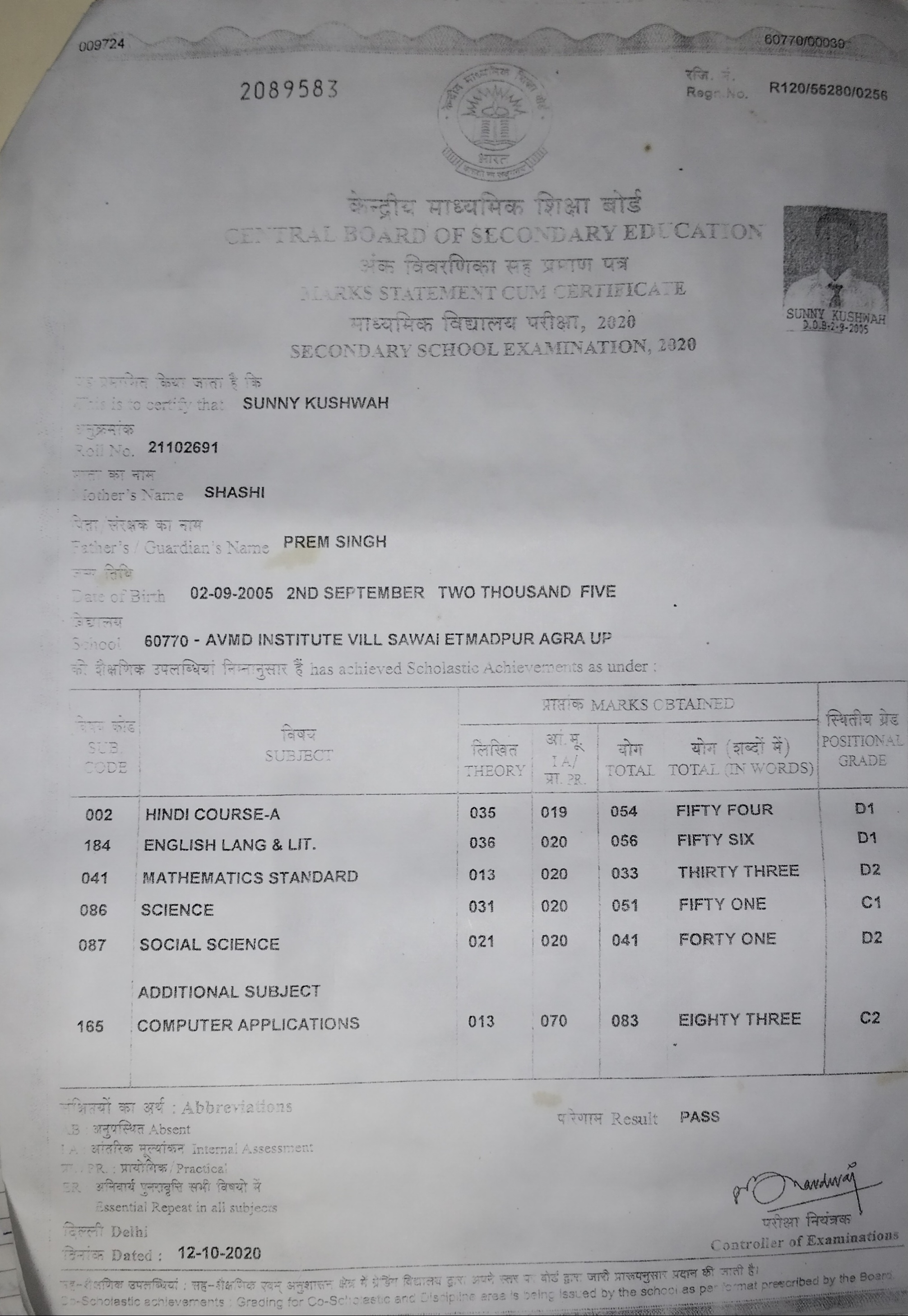 | Exam | Full Marks | Pass Marks | Marks Obtained |