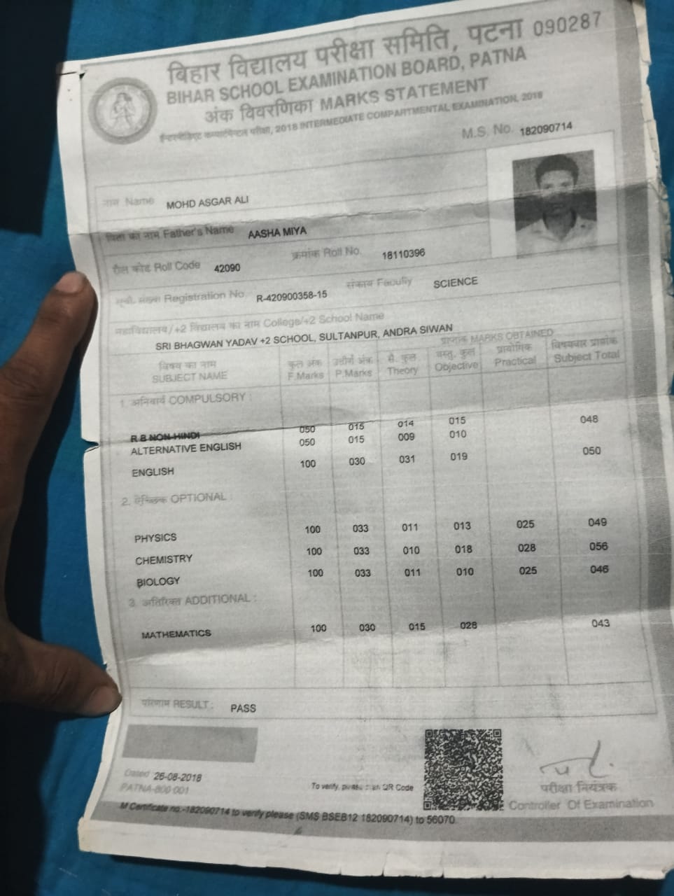 | Exam | Full Marks | Pass Marks | Marks Obtained |