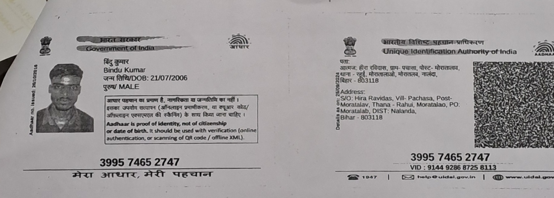 | : | QUAMRUDDIN GANJ, SIM GALI, BIHAR SHARIF, NALANDA, BIHAR - 803101, Nalanda | |