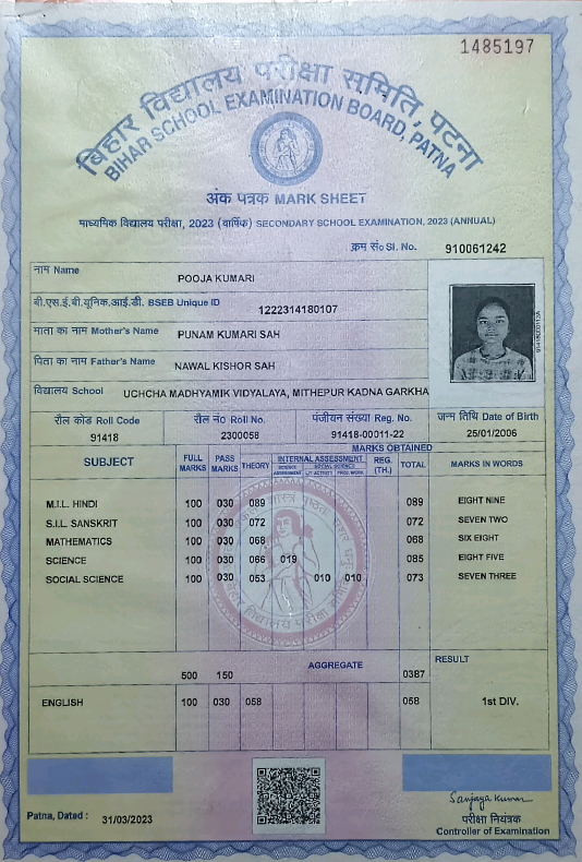 | Exam | Full Marks | Pass Marks | Marks Obtained |