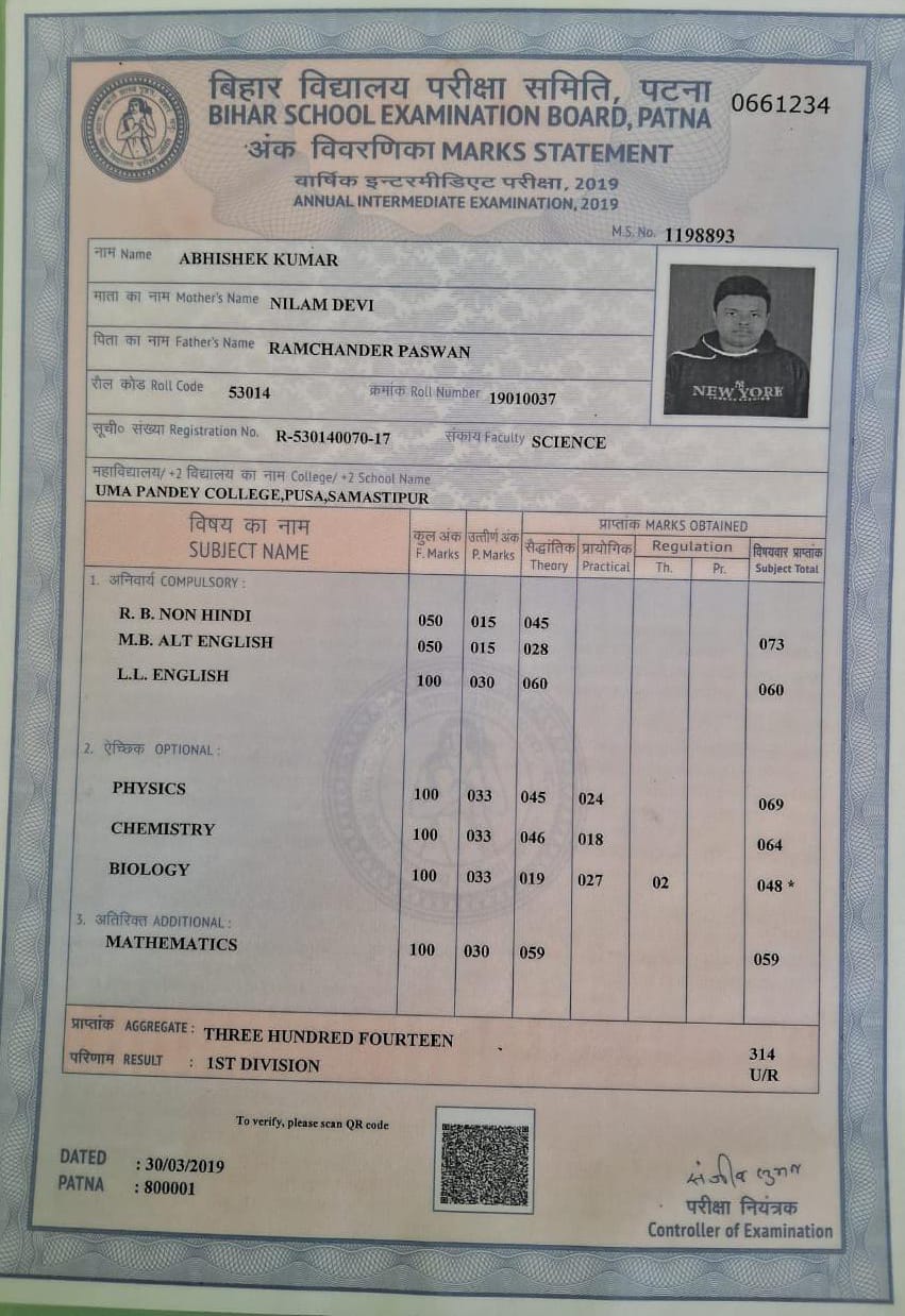 | Exam | Full Marks | Pass Marks | Marks Obtained |