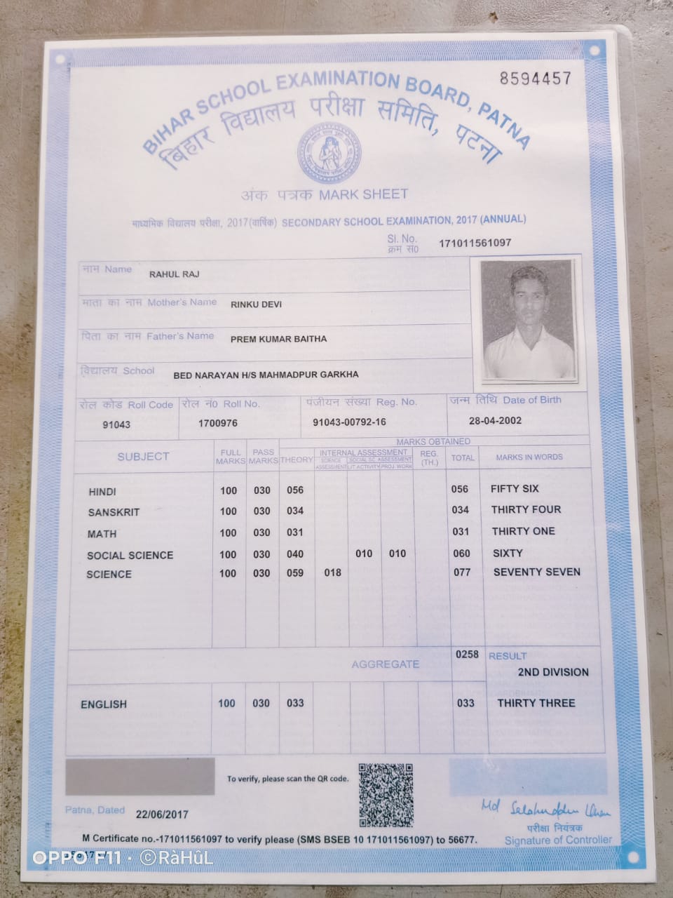 | Exam | Full Marks | Pass Marks | Marks Obtained |