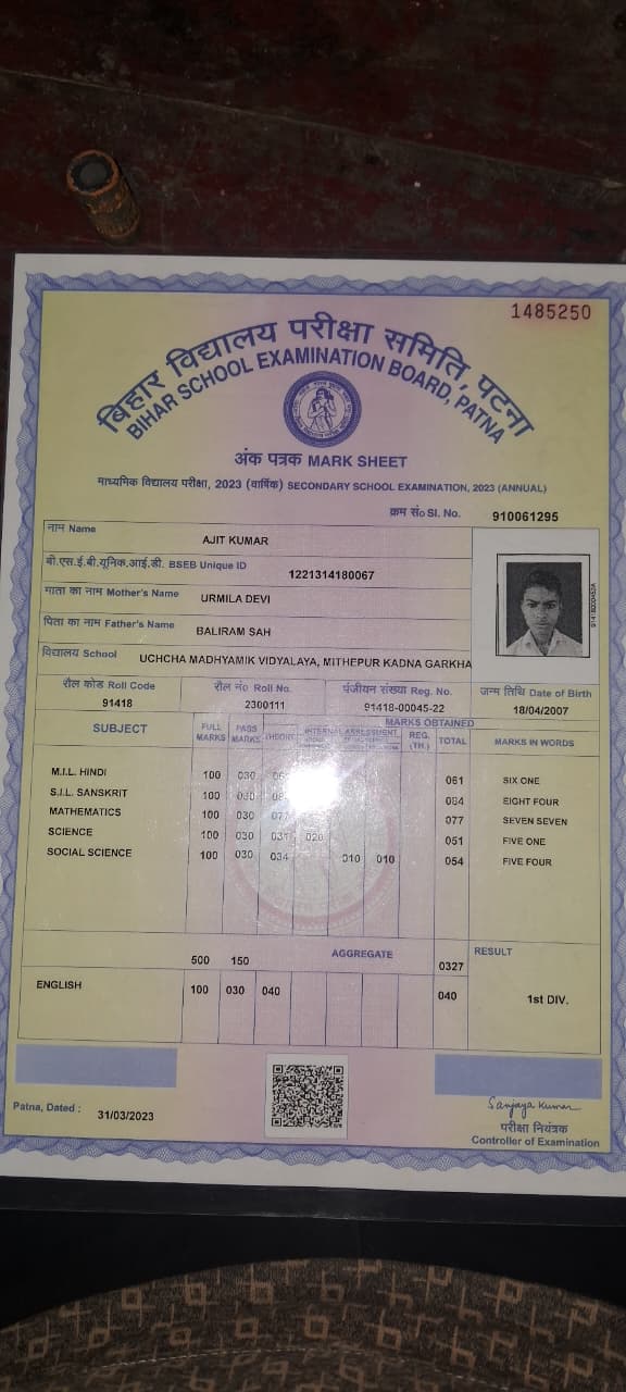 | Exam | Full Marks | Pass Marks | Marks Obtained |