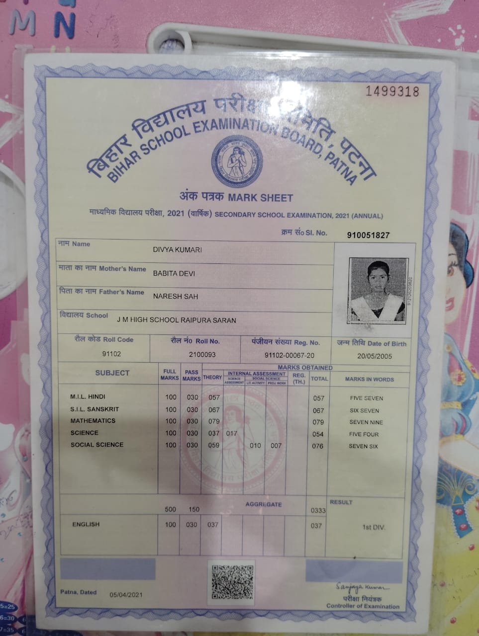| Exam | Full Marks | Pass Marks | Marks Obtained |